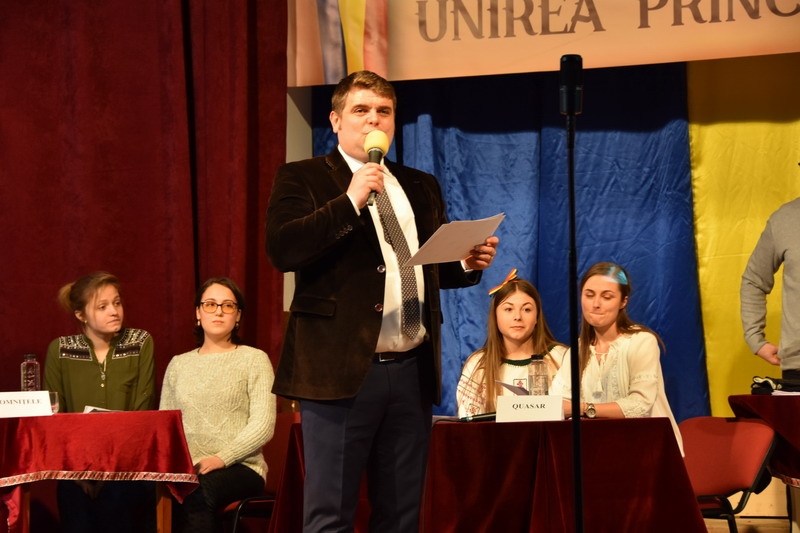 Concursul a fost moderat de profesorii Cristian Chiriac și Ștefan Dănilă, care au fost felicitați, la final, de viceprimarul Alin Gîrbaci, care le-a înmânat cadrelor didactice câte o diplomă în semn de mulțumire. Întrecerea elevilor a avut în acest an un nou format. Concurenții împărțiți în patru echipe (Domnițele, Quasar, Divergenții și Venus) au trebuit să recunoască anumite cântece patriotice interpretate de Ansamblu ”Stejărelul” sau statuile unor personalități marcante ale Micii Uniri, ale căror fotografii au fost proiectate pe perete.
