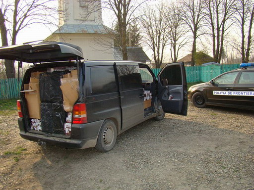 Poliţiştii de frontieră din cadrul Sectorului Poliţiei de Frontieră Rădăuţi-Prut, împreună cu cei de la S.T.P.F Botoşani, au depistat şi reţinut un cetăţean român care transporta 33.740 pachete ţigări de contrabandă cu un autovehicul Mercedes Vito ce figurează radiat din circulaţie în Olanda. Ţigaretele, în valoare de 303.970 lei, şi autovehiculul au fost reţinute în vederea confiscării, în cauză fiind întocmit dosar penal sub aspectul săvârşirii infracţiunii de contrabandă, bărbatul fiind reţinut pentru 24 ore, urmând să fie prezentat Judecătoriei Darabani cu propunerea cu arestare preventivă pentru 29 zile.