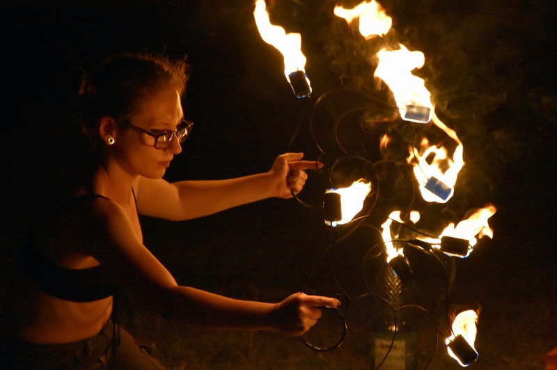 Trei tineri s-au jucat cu focul sâmbăta trecută pe Stadionul ”Chirica Pușcașu” din Darabani. La propriu, în pauza dintre concertele Byron și The Mono Jacks. Ei fac parte din Caravana de Artă Urbană, un proiect al Asociație Artipic care își dorește facilitarea accesului la cultură.