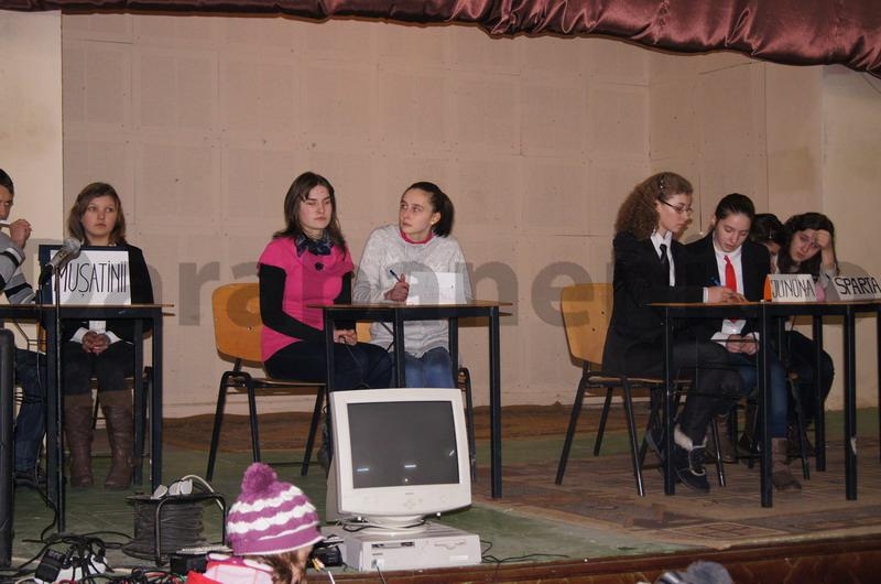 Spectacolul s-a încheiat cu tradiţionalul concurs pe teme istorice, la care au participat 6 echipe: Atena, Junona, Minerva şi Sparta de la Şcoala Gimnazială „Leon Dănăilă”, Muşatinii de la Şcoala „Gheorghe Moroşanu” din Teioasa şi Voicăuţi de la Şcoala Bajura. Combatanţii, elevi ai claselor a VIII-a, au fost departajaţi doar cu întrebări de baraj, scorul fiind foarte strâns până la final. Câştigătoare au fost declarate Evelina Dănăilă şi Nicoleta Nazare, componentele echipei Voicăuţi, fiind urmate în ordine de Atena, Junona, Minerva, Sparta şi Muşatinii. Toţi participanţii au primit premii „după buget, coane Fănică”, din partea Primăriei oraşului. Momentul culminant al serii a fost Hora Unirii, încinsă în faţa Casei de Cultură „Theodor Balş”, şi retragerea cu torţe în acordurile fanfarei (video). Cei prezenţi au servit, la final, fasole cu ciolan, pregătită de angajaţii Primăriei din localitate. (I.D.)