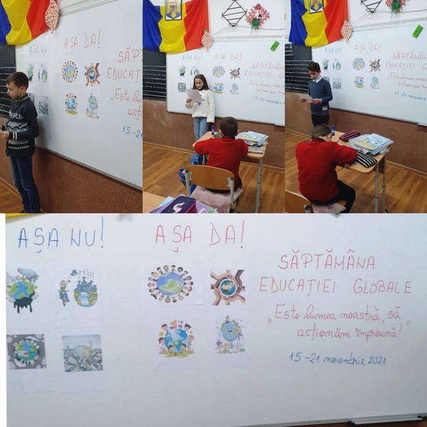 În perioada 15 – 21 noiembrie 2021 s-a derulat proiectul „Săptămâna Educaţiei Globale” (SEG) ce încurajează copiii, tinerii şi cadrele didactice să iniţieze activităţi educaţionale în domeniul cetăţeniei globale prin dezbaterea unor teme ca: diversitatea şi inegalitatea, atât la nivel local cât şi global, având la bază principalele teme ale cetăţeniei globale: sensibilizarea întregii lumi asupra rolului de cetăţeni ai globului, respectarea diversităţii şi a comunicării interculturale, dorinţa de a face ca lumea să devină un loc mai echitabil şi durabil, responsabilitatea asupra propriilor acţiuni, responsabilitatea pentru mediul înconjurător.