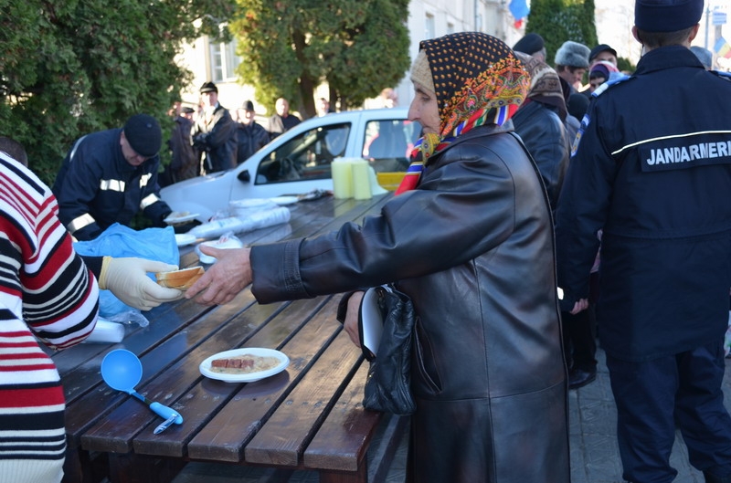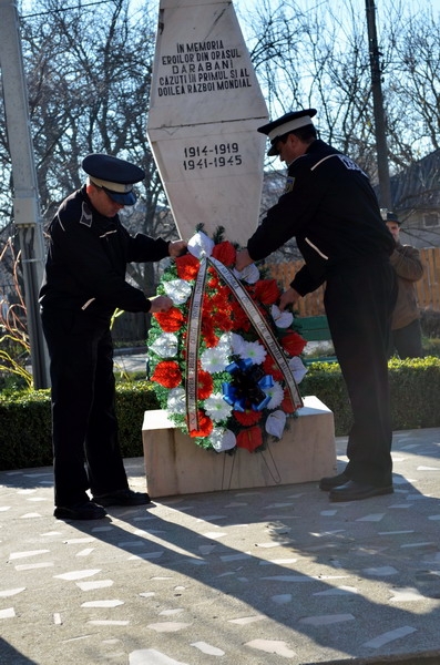După speechurile celor mari, au luat cuvântul micii artişti de la Şcoala Gimnazială „Leon Dănăilă” şi Liceul „Dimitrie Cantemir” pregătiţi de prof. Constantin Florea, membrii Clubului Copiilor Darabani coordonaţi de prof. Mirel Dascălu şi Lăcrămioara Jar, apoi cei prezenţi au asistat la un concert de muzică populară oferit de Orchestra Şcolii Populare de Arte din Botoşani, unitate de învăţământ condusă de dărăbăneanul Liviu Andronic. Între timp, o delegaţie formată din politicieni şi reprezentanţi ai Poliţiei Locale, Jandarmeriei, Poliţiei Române şi Poliţiei de frontieră, plus membrii Asociaţiei „Prietenii Basarabiei, Bucovinei şi a ţinutul Herţei” au depus coroane de flori la Monumentul Eroilor din Darabani, unde un sobor de preoţi a oficiat o slujbă religioasă. În final, dărăbănenii au fost serviţi de angajaţii Primăriei Darabani cu fasole şi cârnaţi, sărmăluţe de post şi vin fiert. „A fost ceva extraordinar, un eveniment de mare anvergură, probabil cea mai amplă manifestare organizată la Darabani cu prilejul unui moment istoric” a conchis consilierul local Florea. (foto: Andra ZVORIŞTEANU)
