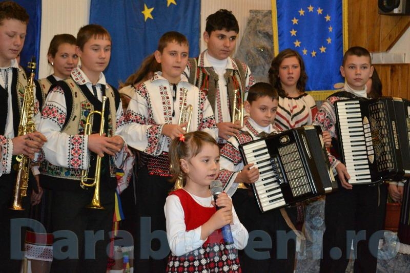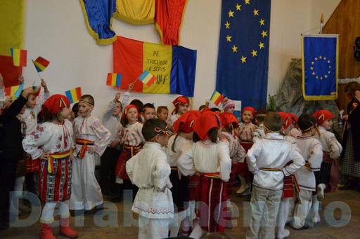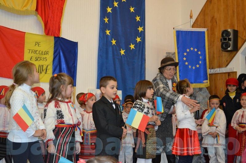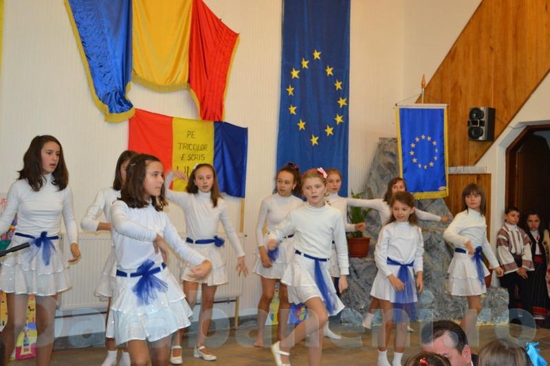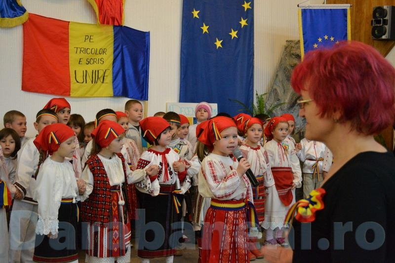 Cei mai mici patrioţi, preşcolarii de la Grădiniţa nr. 2, împreună cu educatoarele Zîna Andronic, Elena Câmpeanu şi Violeta Zelinsche au deschis „balul” cu o serie de cântece şi dansuri populare. Sub bagheta profesorului Constantin Florea au evoluat apoi câteva grupuri vocale, care au interpretat cântece cu puternic accent patriotic. „Cât avem o ţară sfântă, / Şi un nai care mai cântă, / Cât părinţii vii ne sunt / Mai exista ceva sfânt. /Cât avem un sat departe / Şi un grai fără de moarte / Cât ai cui zice părinte, / Mai exista lucruri sfinte” spuneau versurile unuia dintre cântecele interpretate, care au emoţionat asistenţa. A urmat momentul dansatoarelor de la Clubul Copiilor, pregătite de prof. Lăcrămioara Jar care au marcat multiculturalitatea românească prin evoluţiile în stil irlandez sau sud-american.