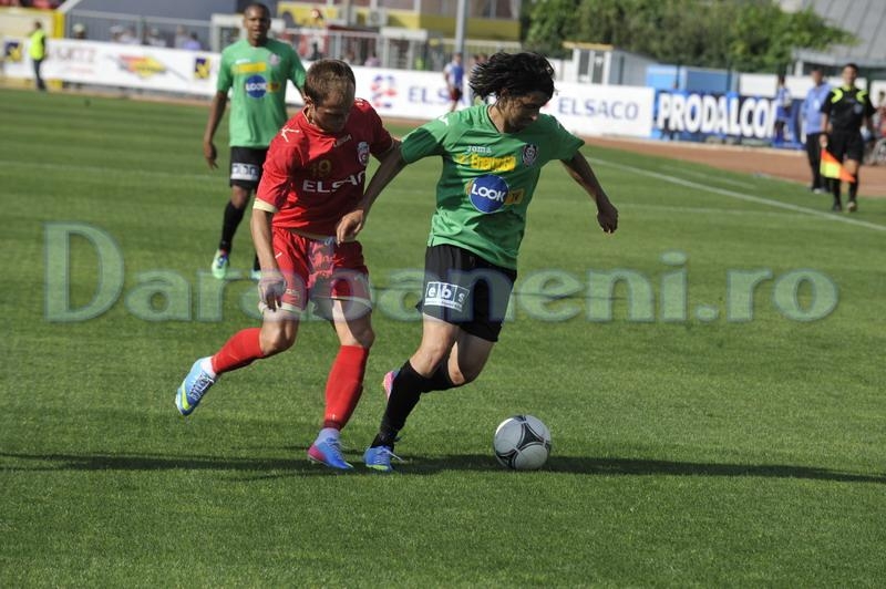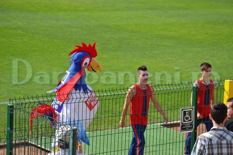 Ionel Nistorică, administratorul delegat al echipei botoşănene a prezentat şi noua mascotă a clubului pe care a numit-o Cocoşel Botoşel. “Eu nu mă dau, ci sunt cocoş / Pieptu’ înainte , mâinile sus / Aeru-n piept şi e de-ajuns” au fost versurile noii mascote a echipei fanion a judeţului. Cel mai important moment al primei reprize s-a consumat în minutul 10 când stoperul Ciprian Dinu a fost eliminat de centralul Marius Avram, după o intervenţie mai hotărâtă a fundaşului botoşănean. În tribune sunt prezente şi mai multe grupuri de dărăbăneni. Partida este arbitrată de Marius Avram, la cele două tuşe aflându-se Mircea Orbuleţ şi Gheorghe Bogdan, fluieraşii fiind huiduiţi copios în momentul în care au părăsit terenul la pauză.