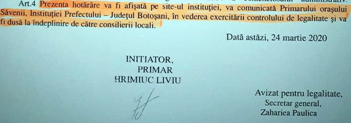 Pe 30 aprilie 2020, Consiliul Local Darabani a votat un nou Regulament de Organizare și Funcționare. Nu intrăm în detaliile documentului deoarece sunt în mare parte chestiuni administrative și procedurale plictisitoare. Însă, citind documentul îți sare în ochi la articolul 18, aliniatul 1, acolo unde este stabilită formula jurământului depus de consilieri, faptul că aceștia își asumă să depună toate eforturile și buna-credință pentru „binele locuitorilor orașului Săveni”. La următorul aliniat, ni se spune că dosarul cu privire la constituirea noului Consiliu Local se păstrează de către Secretarul UAT Săveni.