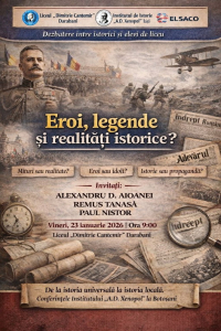 În cadrul manifestărilor dedicate aniversării Unirii Principatelor Române din 1859, Liceul „Dimitrie Cantemir” din Darabani, în parteneriat cu Institutul de Istorie „A.D. Xenopol” din Iași, organizează vineri, 23 ianuarie 2026, evenimentul intitulat „Eroi, legende și realități istorice”.Activitatea constă într-un dialog între istorici și elevi de liceu și are ca obiectiv stimularea reflecției critice asupra modului în care trecutul istoric este ...  continuare »